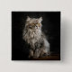 Calmly sitting a full grown fluffy gray cat. Looks like a bit of tabby stripes lightly go through fur.