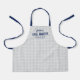 Custom kitchen apron feature classic light gray gingham check with navy blue personalized text of future grill master and name . Great personalized bbq apron for little men. These father son matching grill aprons make a great gift for Father's Day, Grandparent's Day, birthdays and other special occasions.