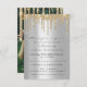 Having your Gray Gold Glitter Drips Birthday Graduation Party Invitation match the theme of your party is a great detail that your guests will appreciate. The thoughtfulness of a consistent party theme is often appreciated and can show your guests that you can host a cohesive event.