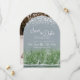 Winter wedding photo save the date card. Perfect for a simple gray, green and white winter snow wedding. Edit this save the date card with your own names and wedding date on one side and your own photo on the reverse. Other matching items and color options are available. Original hand painted winter pine trees at the lake shore art and design by Sarah Trett for www.mylittleedenweddings.com