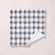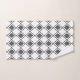 This towel set has a mid-century modern design of solid gray diamonds inside gray diamond outlines on a field of white.