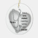Lightweight, smooth, pure white ornament with nice sheen. Perfect size to be seen from across the room ... and to attract closer inspection! Price was great for ordering enough for the whole family! Clear, bold black design just as requested. Matches the order exactly. Just so nice!