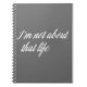 Whether you do not agree with something, do not like what someone is doing, or just do not want to do something in general, let everyone know with this funny yet stylish typography design notebook saying "I'm not about that life." Customize this fun quotation text design by adding your own text.