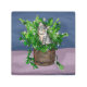 Adorable hand drawn gray cat sitting in a pot of catnip.