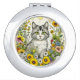 Gray Kitty Cat Sitting in Flowers Compact Mirror