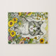 Gray Kitty Cat Sitting in Flowers Jigsaw Puzzle