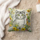 Gray Kitty Cat Sitting in Flowers Throw Pillow