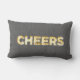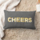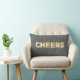 Vintage marquee lighting in golden brown, spells the word Cheers on a rustic gray background that looks likes burlap or linen. This is the perfect cushion for a bedroom, living room or sweetheart table at a wedding.