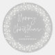 Gray Merry Christmas Script Sparkling Lights Classic Round Sticker