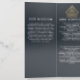 A simple and minimalist business brochure features your name, title, services, and a QR Code. These Luxury aesthetic business brochures are attention-grabbing, featuring a unique modern design that presents a refined, high-end feel. Great for private or commercial contractors in various fields. The face of the cards features white text colors, as well as a gold faux foil.