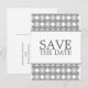 Simple and elegant Modern Deco Save the Date Postcard in dark gray featuring a stylish art deco pattern. This chic save the date postcard is easy to customize with your wedding details. Click "Customize It" to find more personalization options.