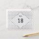 Simple and sophisticatedly chic Modern Polka Dots Wedding Table Number Postcard with a light gray triangle shaped overlay and a delightful black and white patterned polka dot background. This classic and minimalist geometric table card is easy to customize with your wedding details. Find more personalization options by clicking Customize.