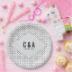 Simple and sophisticatedly chic Modern Polka Dots Wedding Paper Plates with a light gray triangle shaped overlay and a delightful black and white patterned polka dot background. These classic and minimalist geometric plates are easy to customize with your wedding details. Find more personalization options by clicking Customize.