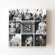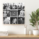 Gray Monogram Family Photo Collage Square Wall Clock