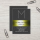 Gray monogram greeny yellow striped business card