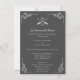 Invite guests to your rehearsal dinner with a Gray Monograms and Arrows wedding rehearsal dinner invitation. Invitation design features crossed arrows and monogram placement adorned with elegant corner flourishes. Personalize with the groom and bride's names along with the rehearsal dinner details. Additional wedding stationery available with this design as well.