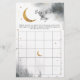 Over the moon theme baby shower activity card. Have some fun at your baby shower with this bingo game card. Watercolor splash in gray with faux gold moon and stars. The bingo game asks the guests to guess what gifts the mommy-to-be will be receiving. Original illustration and design by Namibear Art Studio.©Namibear