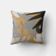 Modern throw pillow features an artistic abstract botanical leaf design in a gray and mustard yellow color palette with black accents. This abstract composition is built on combinations of organic leaves and flowers, which are overlapped and interlaced to form a stylish organic pattern. The gray design elements with black accents compliment the mustard yellow colored background.