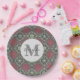 Gray Nordic Snowflake Winter Monogram Pattern Paper Plates