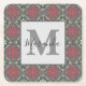 Gray Nordic Snowflake Winter Pattern Monogram Square Paper Coaster