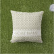 Gray Olive & White nautical pillow. Olive Green small geometric pattern pillow with Boat Name or Beach House Name template. Combination of classic Japanese Shippo pattern with modern minimal Custom Name typography. Boat Name placement on both sides. Easy to personalize powerful patio and deck idea for coastal outside seating areas. #ybeedesign #ybeesea #khakigeometricpatternpillow #olivegreengeometricpatternpillow #khakipillows Patio deck decorating ideas made with ocean love © Design y.BEE SEA
