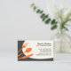 A modern business card with a clean and sleek design featuring an orange outline of a spoon, knife, and fork on a dark gray and slightly off-white / cream colored, curved background. The image can symbolize food, eating, a restaurant etc. Customizable text areas for name, title and business name and other contact information on the front. Choose between dark gray or light back. For custom requests or help with customizing please use the store contact link. Contemporary and simple yet elegant design for chefs, restaurants and catering services.