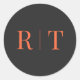 Gray orange Monogram Wedding Classic Round Sticker