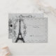 Seat guests accordingly at your wedding with this alluring seating card design featuring a gray Parisian theme with a grunge postage background and Eiffel Tower embellishment. Customizable text allows you to alter fonts, change text colors and sizes as you wish. Matching wedding stationery available with this design as well.