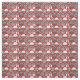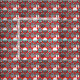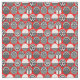 This fabric has a geometric design of ovals with different patterns in gray in each half all on a field of red.