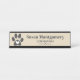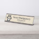 They leave paw prints on our hearts! This cute personalized paw print and heart silhouette desk name plate has neutral taupe, white, and gray colors. This name plate makes a great gift for a veterinarian's desk!