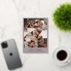 Elegant and practical informal wedding invitation with a photo collage of five photos on the front and a sixth photo on the back. Spanish gray photo collage wedding invitation with your names in rose gold foil. Practical wedding invitation with the information easily available on the front with room to add a link to your wedding website on the back. Minimalist photo collage wedding invitation personalized with your names in gold foil. Warm gray and rose gold wedding invitation with a photo collage and minimalist wedding wording.
