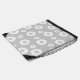 Stylish drawstring backpack done in light gray, with white and pink daisies and polka dot pattern. Customize to add any text to this all purpose carry all bag.
