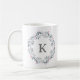 Monogram this gray and pink floral wreath coffee mug with your initial. Great gift idea, or buy one for yourself.