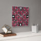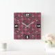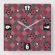 Gray pink geometric checkered pattern with flowers square wall clock