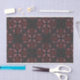 This tissue paper features an intricate and symmetrical design, characterized by a harmonious blend of dark hues, which are accentuated with vibrant pink elements that resemble flowers or ornamental motifs. Each motif is intricately detailed, showcasing meticulous craftsmanship. The overall style of the tissue paper evokes a sense of traditional artistry, transforming a simple utilitarian item into a piece of art. The aesthetic combines both traditional and modern elements, making it versatile for various uses.