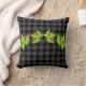 Gray Plaid with Fall Maple Leaves Throw Pillow