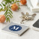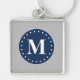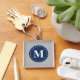 Cute, chic, trendy, gray and white polka dot pattern background with a navy blue custom label monogram template with dotted border.