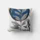 Gray & Prussian Blue Abstract Watercolor Leaf Throw Pillow
