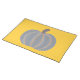Painting of a gray pumpkin trimmed in orange lights, printed on placemats. Great for Halloween.