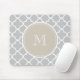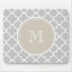 Gray Quatrefoil Pattern, Beige Monogram Mouse Pad