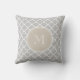 Gray Quatrefoil Pattern, Beige Monogram Throw Pillow