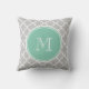 Gray Quatrefoil Pattern, Mint Green Monogram Throw Pillow