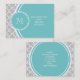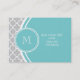 Gray Quatrefoil Pattern, Teal Monogram Business Card