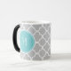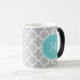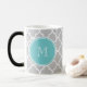 Gray Quatrefoil Pattern, Teal Monogram Color Morph Mug