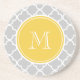 Gray Quatrefoil Pattern, Yellow Monogram Coaster