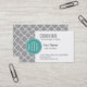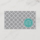 Gray Quatrefoil with Custom Mint Monogram Business Card