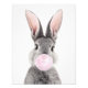 Gray rabbit blowing pink bubble gum photo print