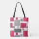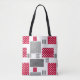 Gray red polka dot patchwork on white background tote bag