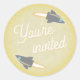 Introducing our charming Rockets & Moon Envelope Seal, designed to elevate your invitations to the next level. Featuring two delightful gray rockets orbiting in front of a radiant full moon, this seal captures the essence of playful adventure. The inviting text "You're invited" is elegantly rendered in a bold retro script, making it a perfect finishing touch for your upcoming celebration.