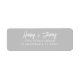 Grey return address labels with modern script. Personalize with your information and choice of colors. These are definitely our fan favorite and we don't blame them. Stylish and chic with a simple modern look.